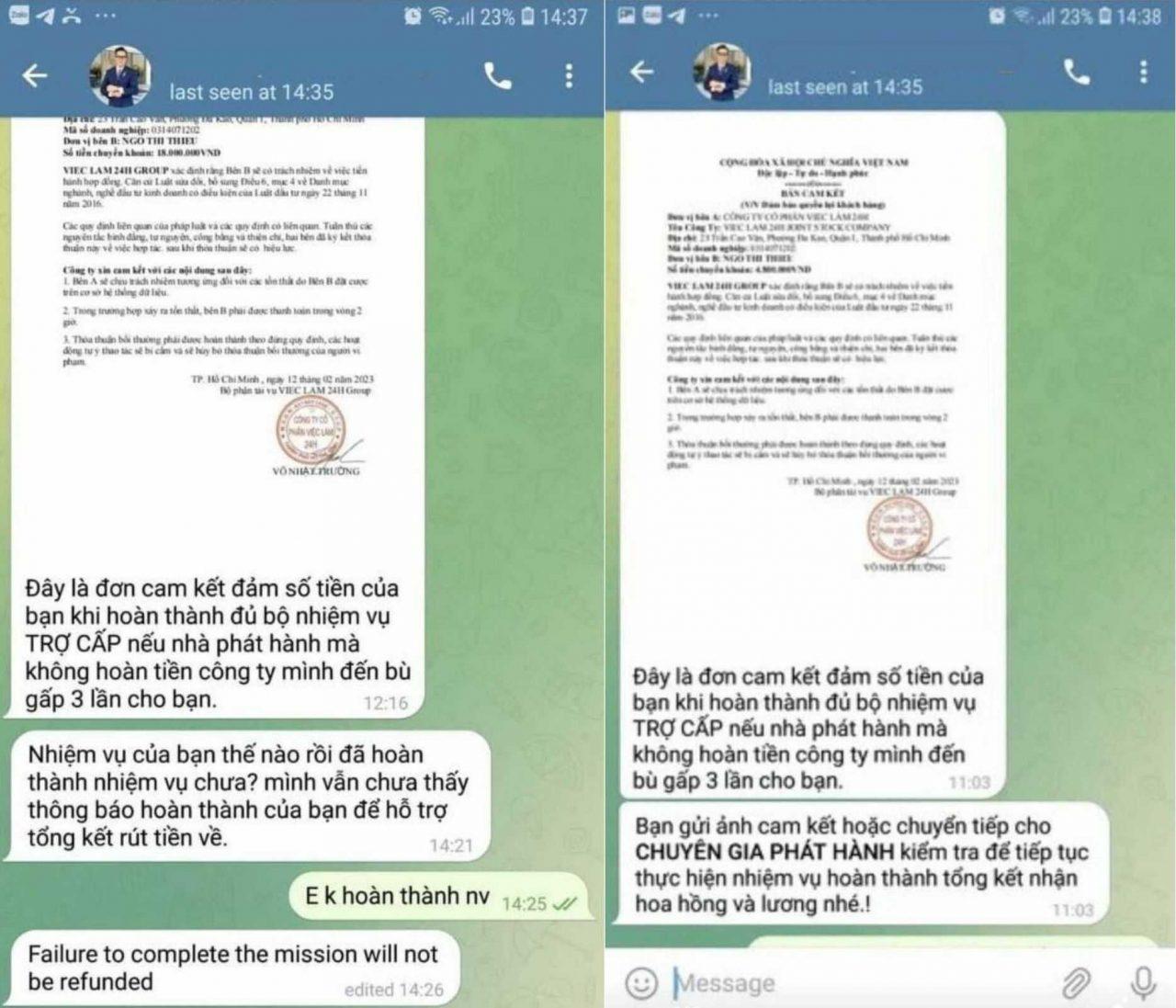 Các thủ đoạn này tinh vi tới mức làm giả giấy tờ, con dấu, chữ ký mang tên tuổi của các công ty lớn để người bị lừa tin tưởng hơn. Khi đã đạt được mục đích, những tài khoản lừa đảo này nhanh chóng ‘bốc hơi’ không để lại dấu vết gì, chỉ còn lại nạn nhân hoang mang, vừa mất thời gian, mất tiền mà vẫn không có việc làm.
